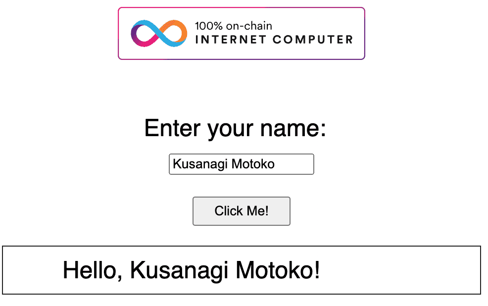 cd hellohello というプロジェクトを作ると、2 つのキャニスターのソースコードも自動で作られます。 もちろんソースコードをあなたの好きに変えても構いません。