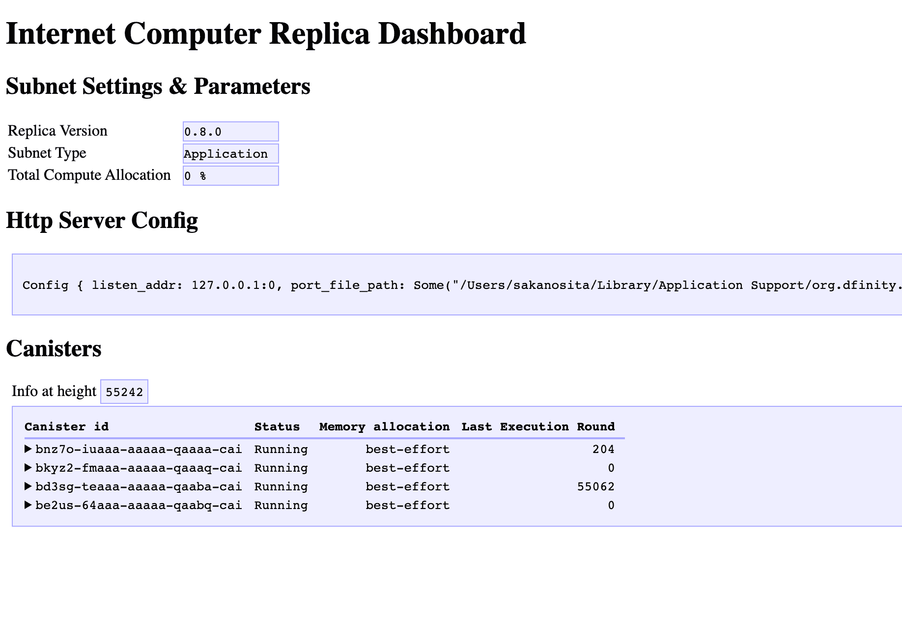 これであなたの PC 上にテスト用の Internet Computer が起動できました。