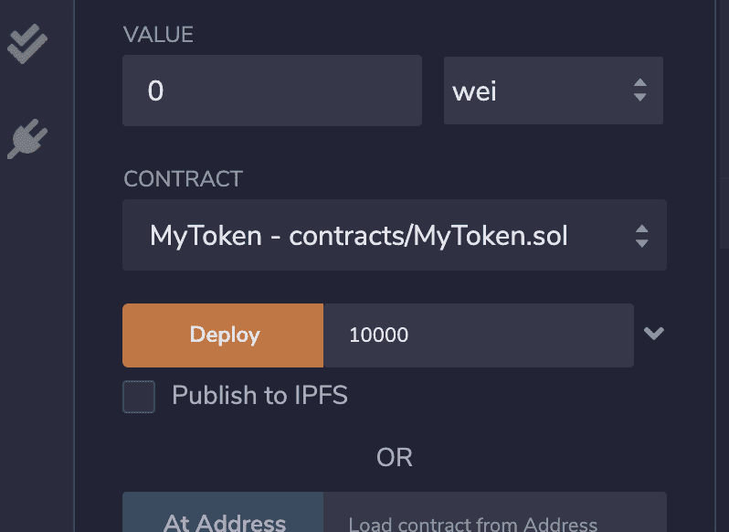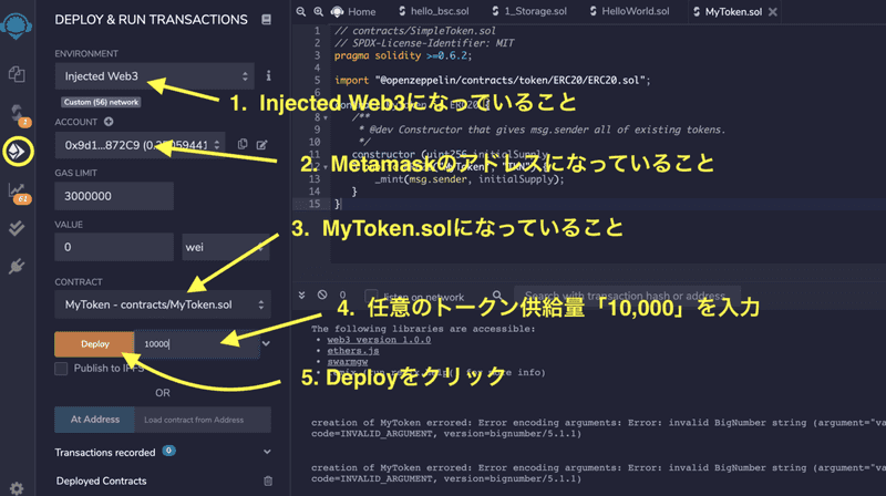 トークンの供給量を決めます。 今回は 10,000 にするとして、Deploy ボタンの隣に半角で「10000」と入力します。