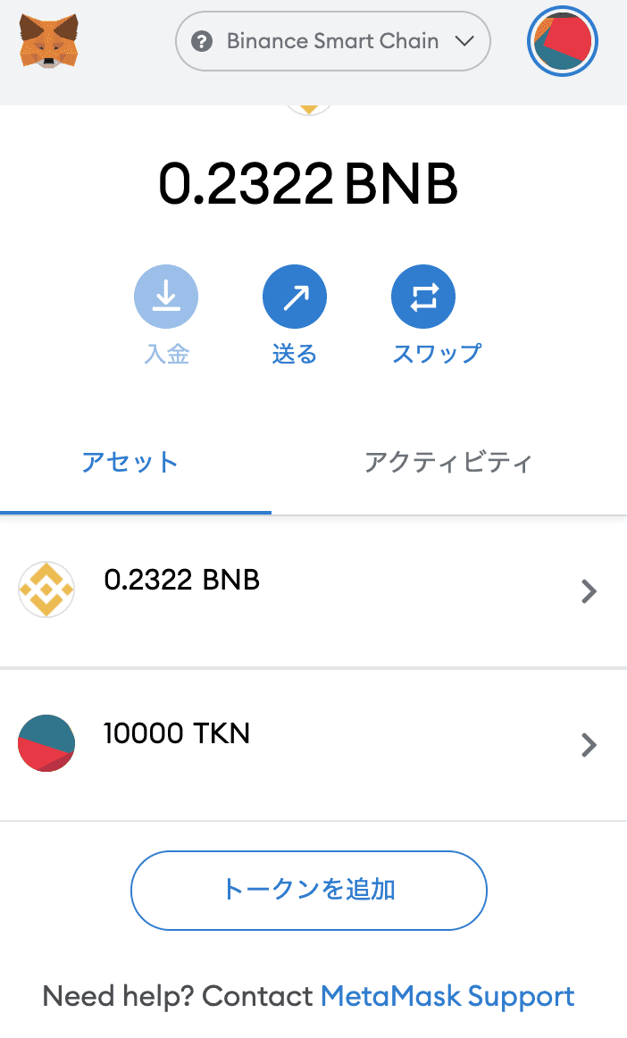 無事に Metamask に MyToken を 10,000TKN 登録できました!