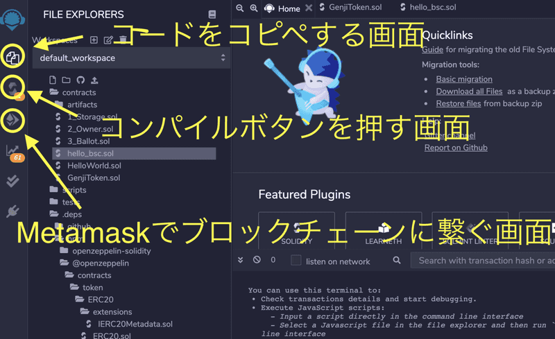 コードを書いたり、コンパイルしたり、ブロックチェーンにデプロイしたりできます。